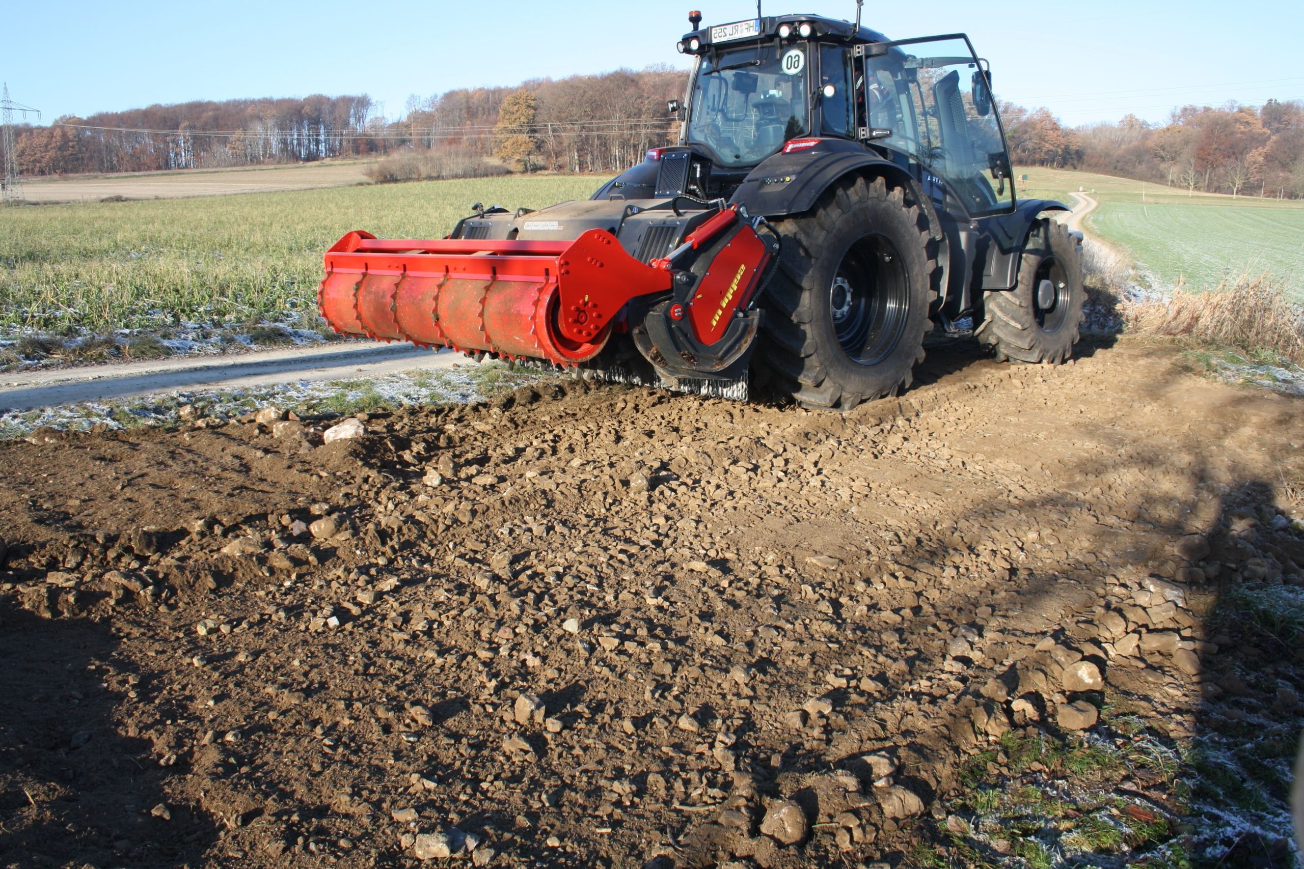 Für die Bearbeitung von Schotterwegen setzen wir eine schwere Steinfräse der Firma Seppi ein. Diese zerkleinert die…